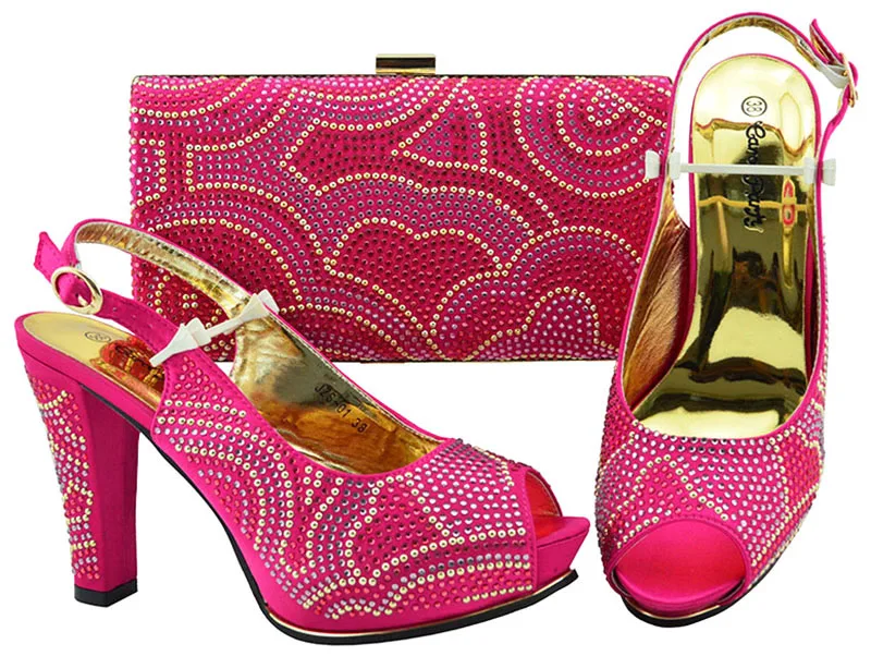 Best Product Hot fushia pink shoes matching bag for aso ebi 2018 shoe and bag italian new design african party s